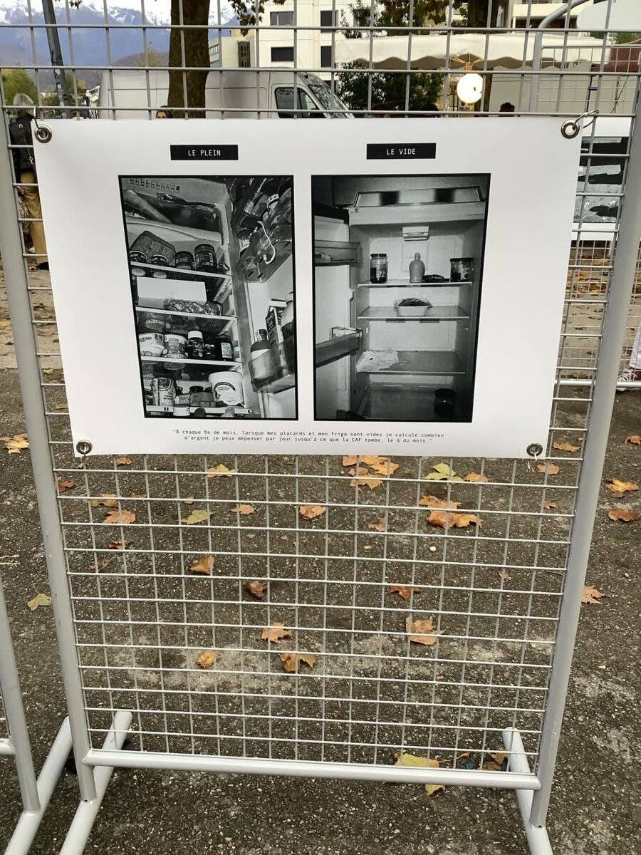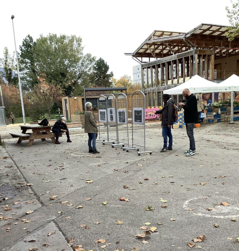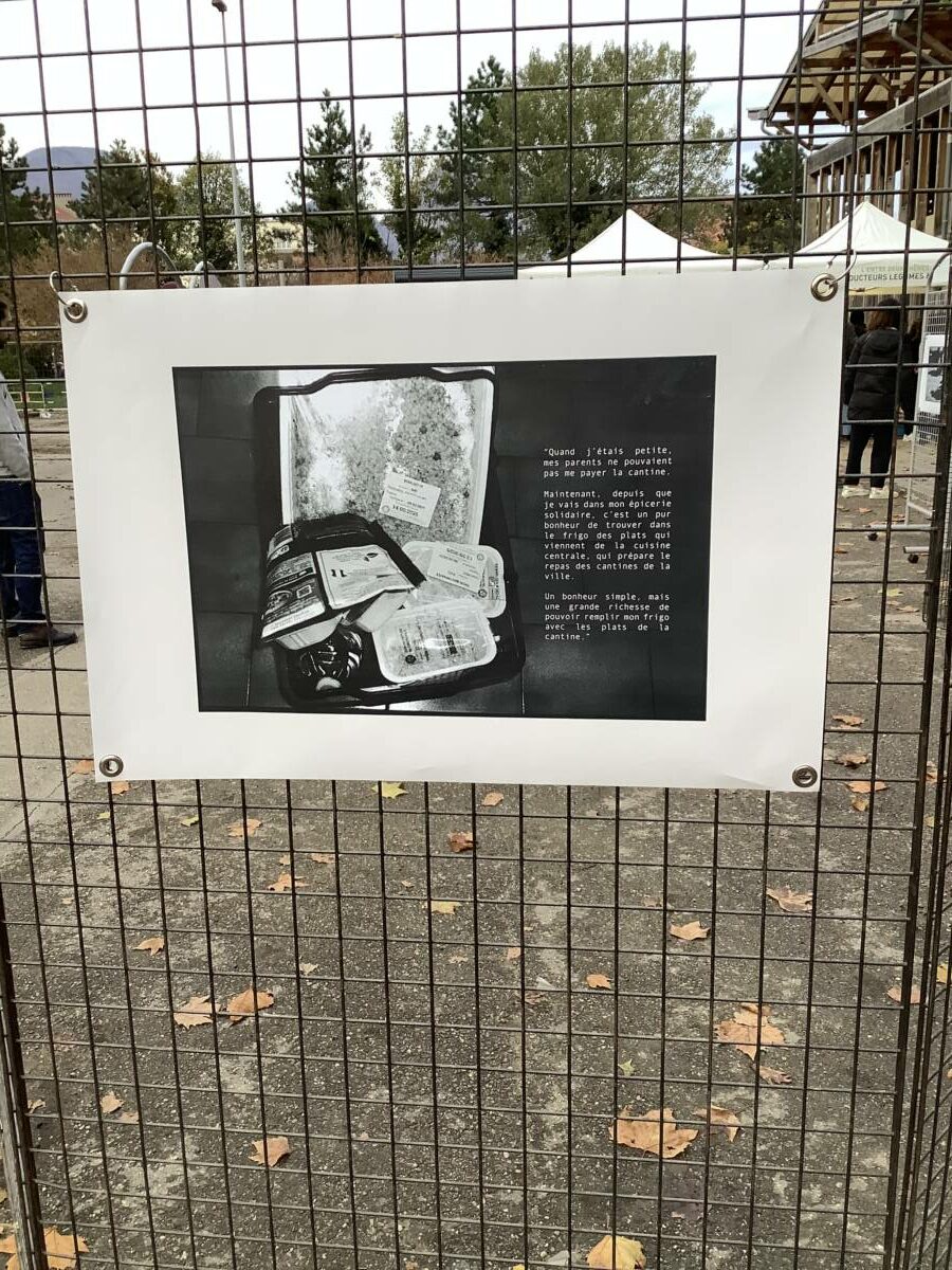 L’expo de photographies Faim du mois a été présentée pour la première fois au public le 31 octobre, pendant le marché Flaubert qui se tient tous les vendredis, en fin d’après midi, sur le parvis de La Bifurk à Grenoble.