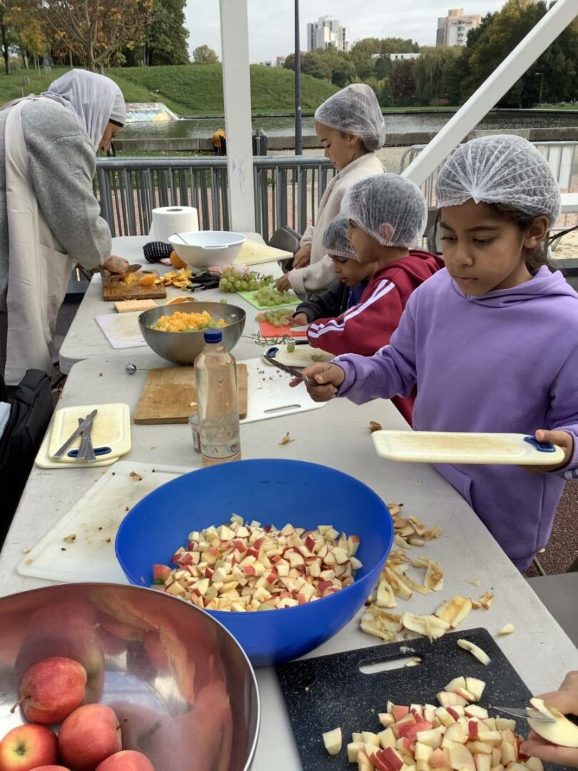 Chaque convive a pu goûter, dans des bols recyclables et des verres réutilisables, des plats cuisinés dans plusieurs ateliers :