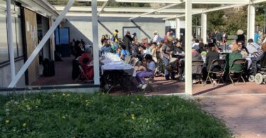 Le banquet s’est tenu sous la (future) pergola du bâtiment de la Halle des Iris (ancienne piscine réaménagée et inaugurée en 2024), gérée par l’association du même nom, dont le projet est d’en faire un lieu partagé de bien-être et bien-vivre.