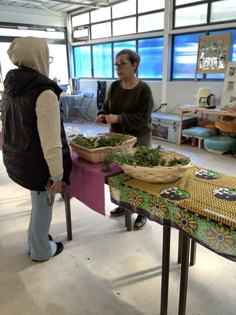 Des tisanes confectionnées avec les plantes du jardin aromatique situé derrière la halle ont été proposées le matin.