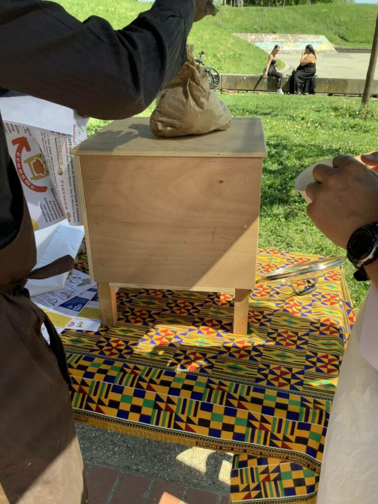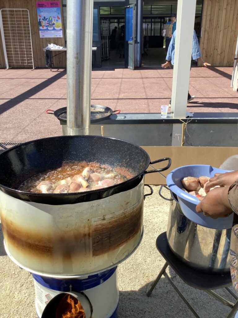 L’association des Sénégalais de l’Isère a préparé un poulet yassa. La volaille a été cuite sur un des cuiseurs bois écologiques du Low Tech Lab de Grenoble.