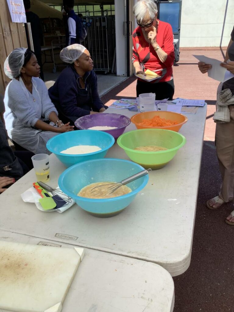 Préparation d’un carrott cake par les habitantes et la MDH Le Patio : les ingrédients sont prêts.