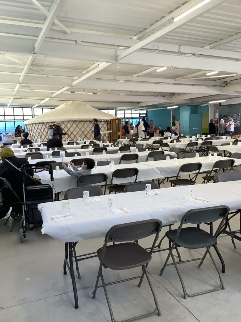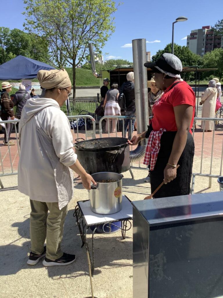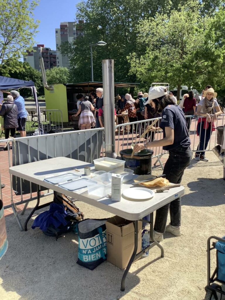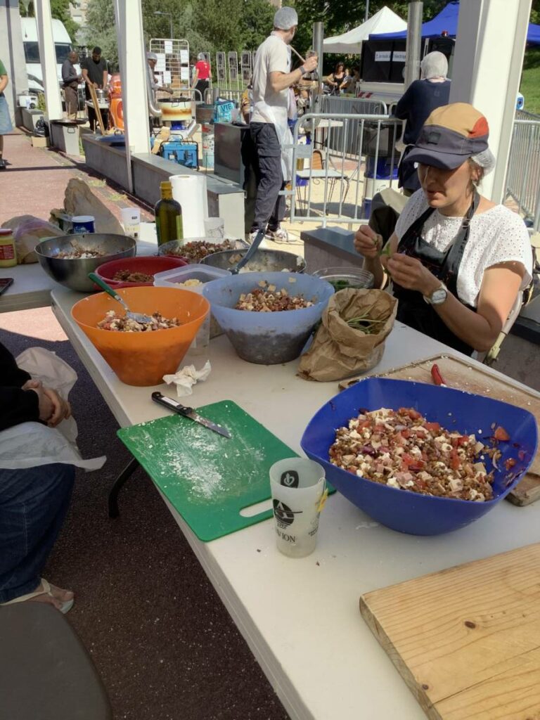 La deuxième édition de La grande tablée, coordonnée par la Régie de quartier Villeneuve-Village olympique-Vigny Musset, avec le soutien de la Ville de Grenoble, a eu lieu le 25 avril. Retours en images sur les ateliers de cuisine qui ont mobilisé les associations et les habitant.e.s pour préparer les entrées, plats et desserts dégustés par plus de 180 personnes toutes invitées pour le déjeuner à la Halle des iris, l’ancienne piscine couverte dans le Parc Jean-Verlhac de Grenoble. Une deuxième édition qui, comme la première, a permis de cuisiner des plats de diverses cultures culinaires avec des modes de cuisson les plus écologiques possibles.