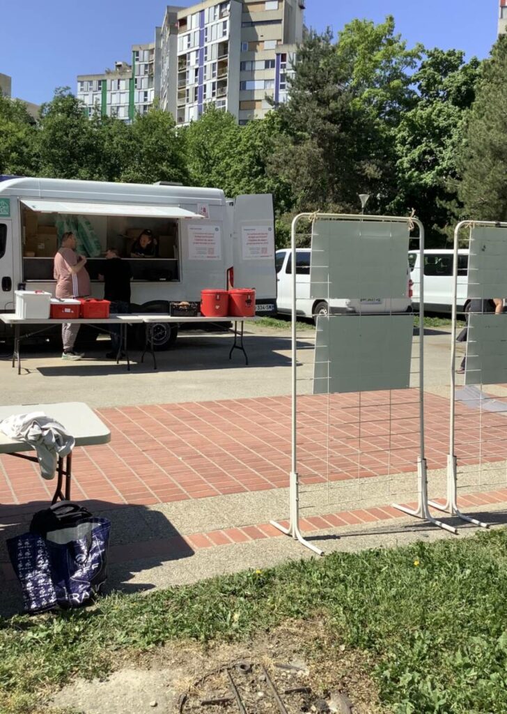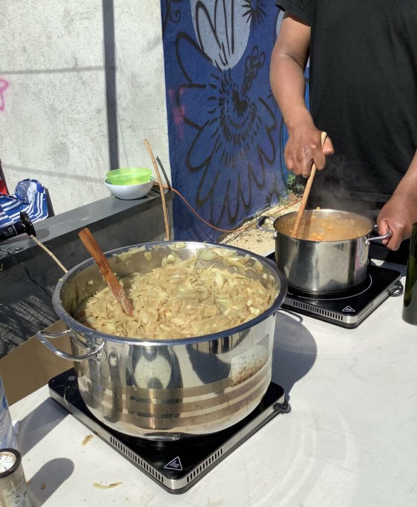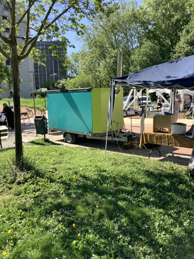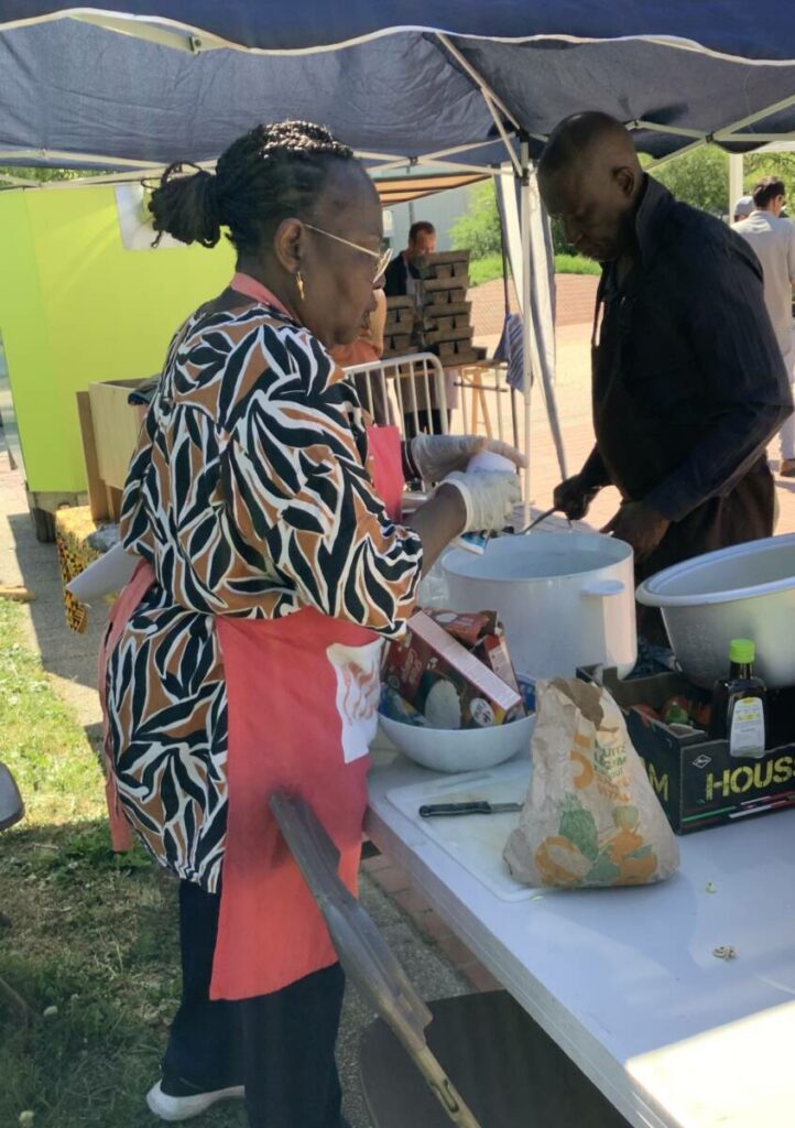 La deuxième édition de La grande tablée, coordonnée par la Régie de quartier Villeneuve-Village olympique-Vigny Musset, avec le soutien de la Ville de Grenoble, a eu lieu le 25 avril. Retours en images sur les ateliers de cuisine qui ont mobilisé les associations et les habitant.e.s pour préparer les entrées, plats et desserts dégustés par plus de 180 personnes toutes invitées pour le déjeuner à la Halle des iris, l’ancienne piscine couverte dans le Parc Jean-Verlhac de Grenoble. Une deuxième édition qui, comme la première, a permis de cuisiner des plats de diverses cultures culinaires avec des modes de cuisson les plus écologiques possibles.