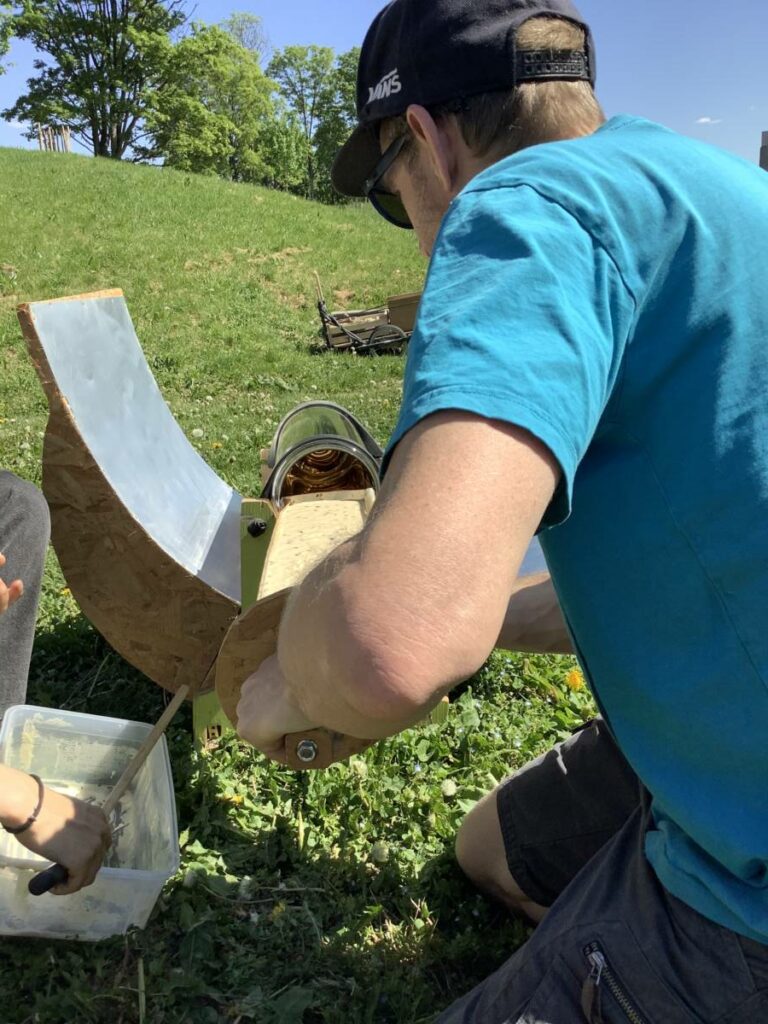Ce samedi 25 avril, météo parfaite pour faire cuire le gâteau dans le four solaire du Low Tech Lab !