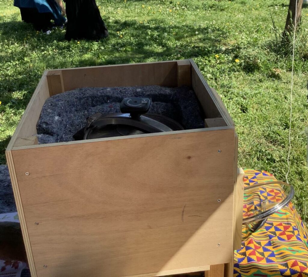 L’association Improdett a utilisé des marmites économes qui consistent à mettre les plats chauds dans un caisson bien isolé pour poursuivre leur cuisson sans énergie.