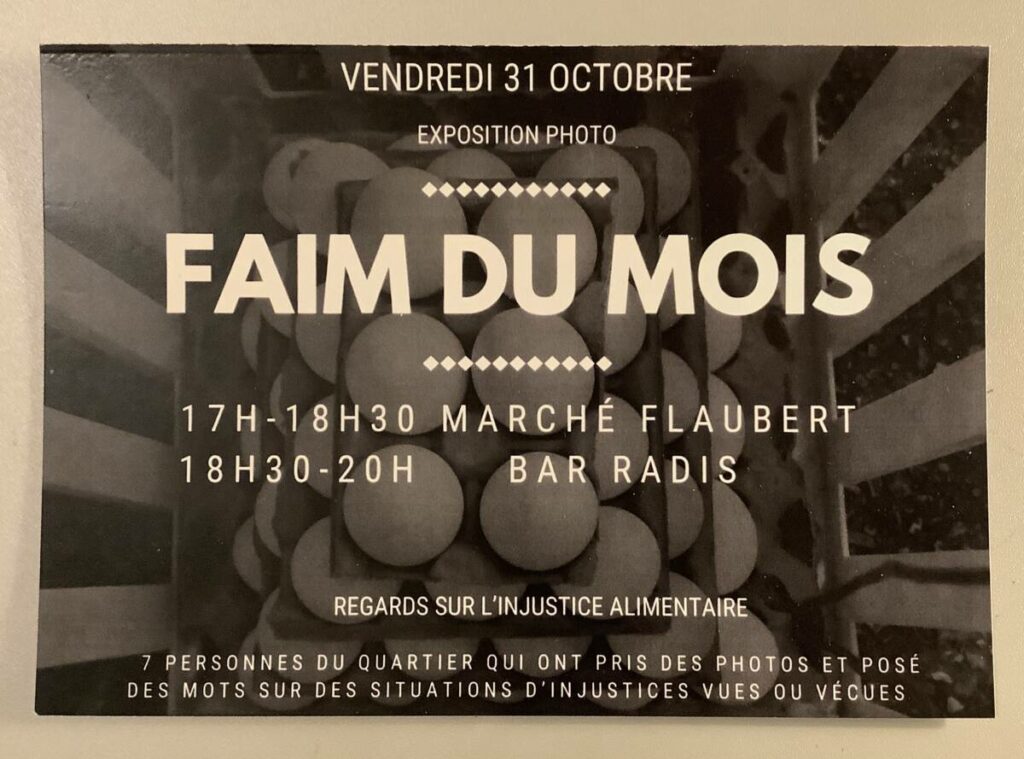 en brefannonce Expo photos : regards sur l’alimentation 29 octobre 20251 min de lecture À découvrir vendredi, des photographies prises par des habitant(e)s sur des situations vues ou vécues comme des « injustices alimentaires ». Dans le cadre du marché Flaubert, puis au Bar Radis Le flyer-carte postale diffusé : À suivre : reportage. FacebookXPinterestLinkedIn