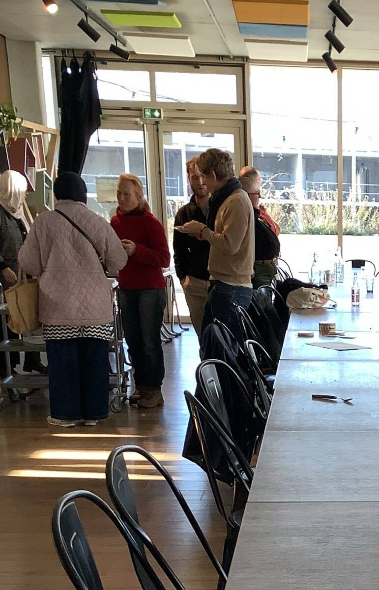 Comme il avait été annoncé, un repas a d’abord réuni une trentaine de convives, pour la plupart membres de la petite assemblée d’habitant(e)s, appelée « comité citoyen », et du groupe d’organismes qui gouvernent le projet.