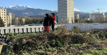 À 300 m à vol d’oiseau, la tour (qui date de la fin des années 1960) de la Caisse primaire d’assurance maladie (CPAM) de l’Isère, branche maladie de la Sécu : avec ses 17 étages, elle est là pour rappeler l’ampleur des richesses humaines à mobiliser et organiser dans un véritable projet de Sécu (actuellement 150 000 salarié.e.s en France).