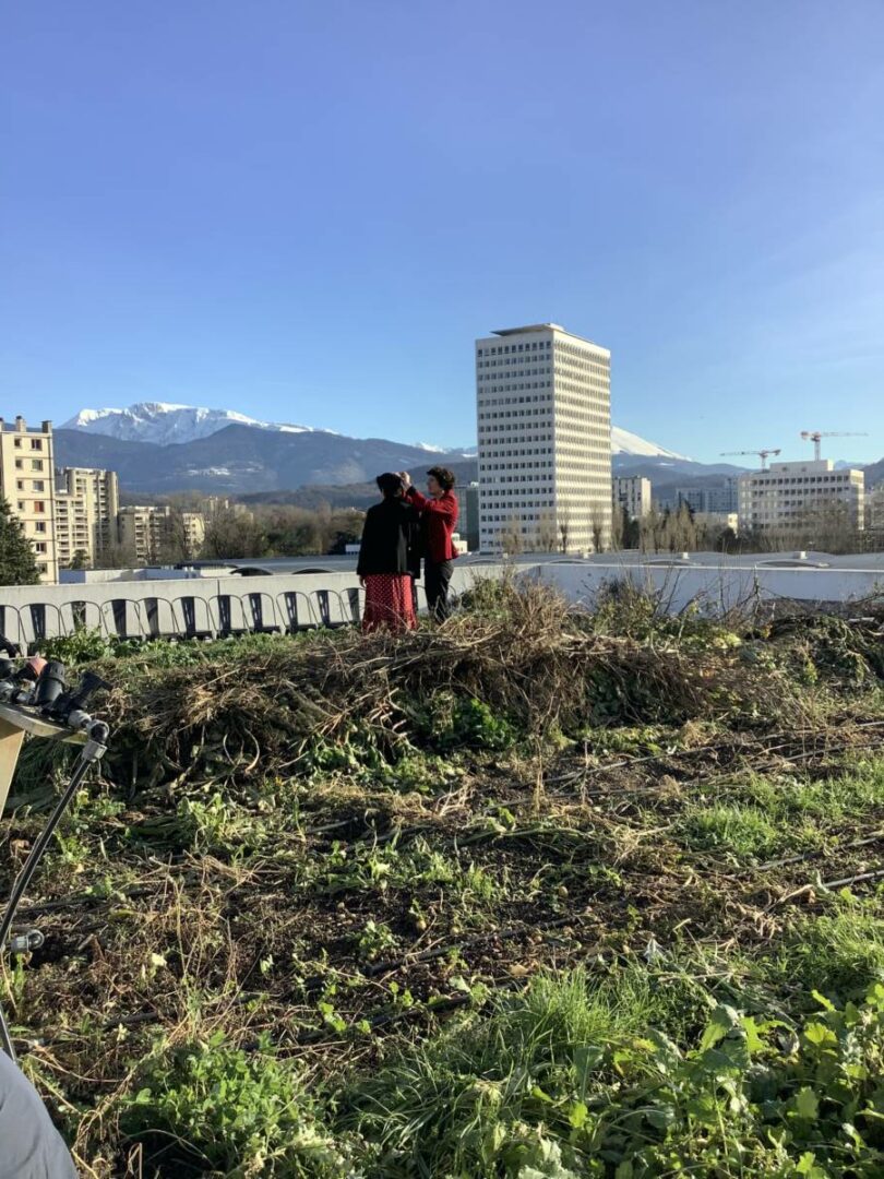 Environ 60 personnes sont venues, dont la moitié pour s’informer sur le projet et assister au spectacle proposé. Tel que cela s’est passé, ce fut donc une après-midi de portes ouvertes, avec un spectacle sérieux de la Compagnie Infusion qui a proposé On mange quoi demain ? dans le potager perché du Bar Radis.