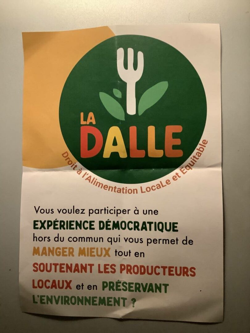 Puis, en début d’après-midi, quelques membres du comité citoyen ont brièvement témoigné en faveur du projet nommé La DALLE, car il vise le « droit à une alimentation locale et équitable ».