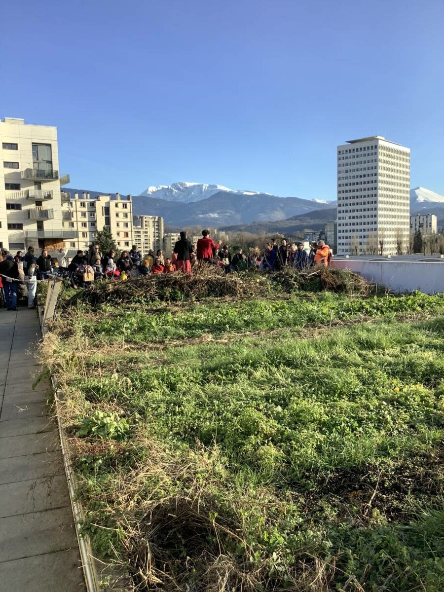 Environ 60 personnes sont venues, dont la moitié pour s’informer sur le projet et assister au spectacle proposé. Tel que cela s’est passé, ce fut donc une après-midi de portes ouvertes, avec un spectacle sérieux de la Compagnie Infusion qui a proposé On mange quoi demain ? dans le potager perché du Bar Radis.